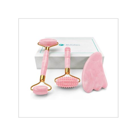4-in-1 Jade Roller and Gua Sha Set. Rose Quartz Roller