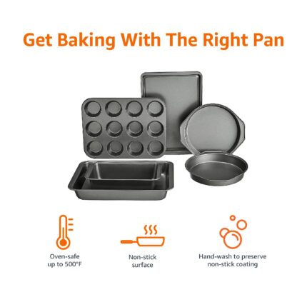Amazon Basics 6-Piece Nonstick, Carbon Steel Oven Bakeware Baking Set