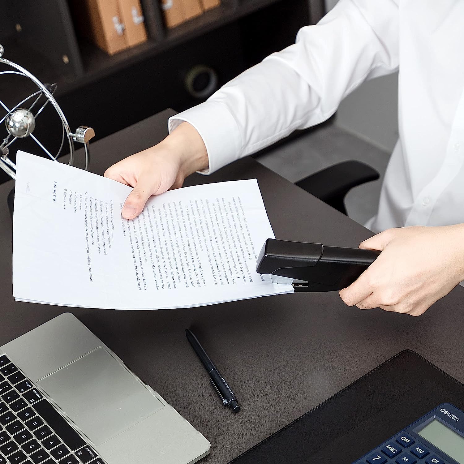 - Hand held stapler can staple pages at a variety of angles