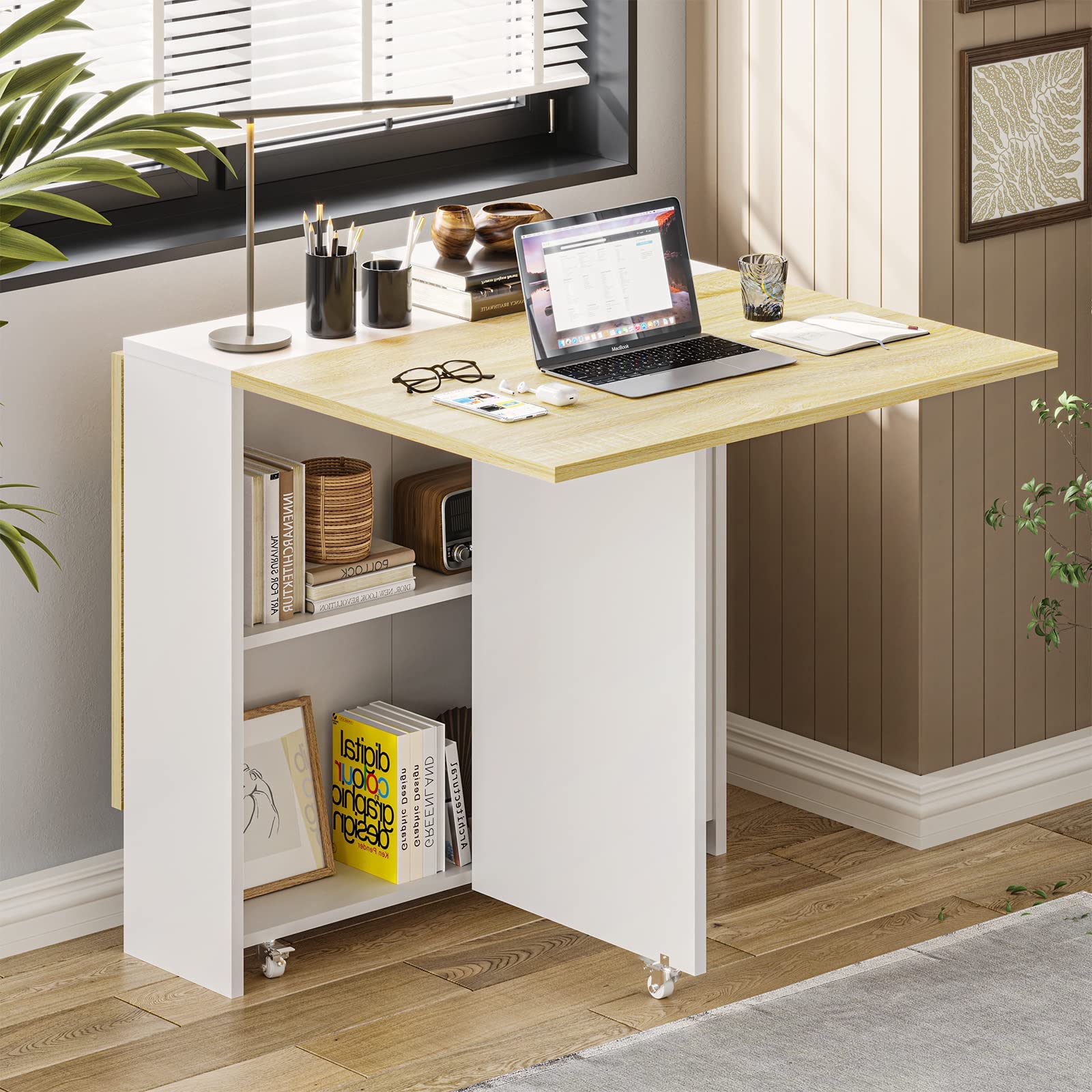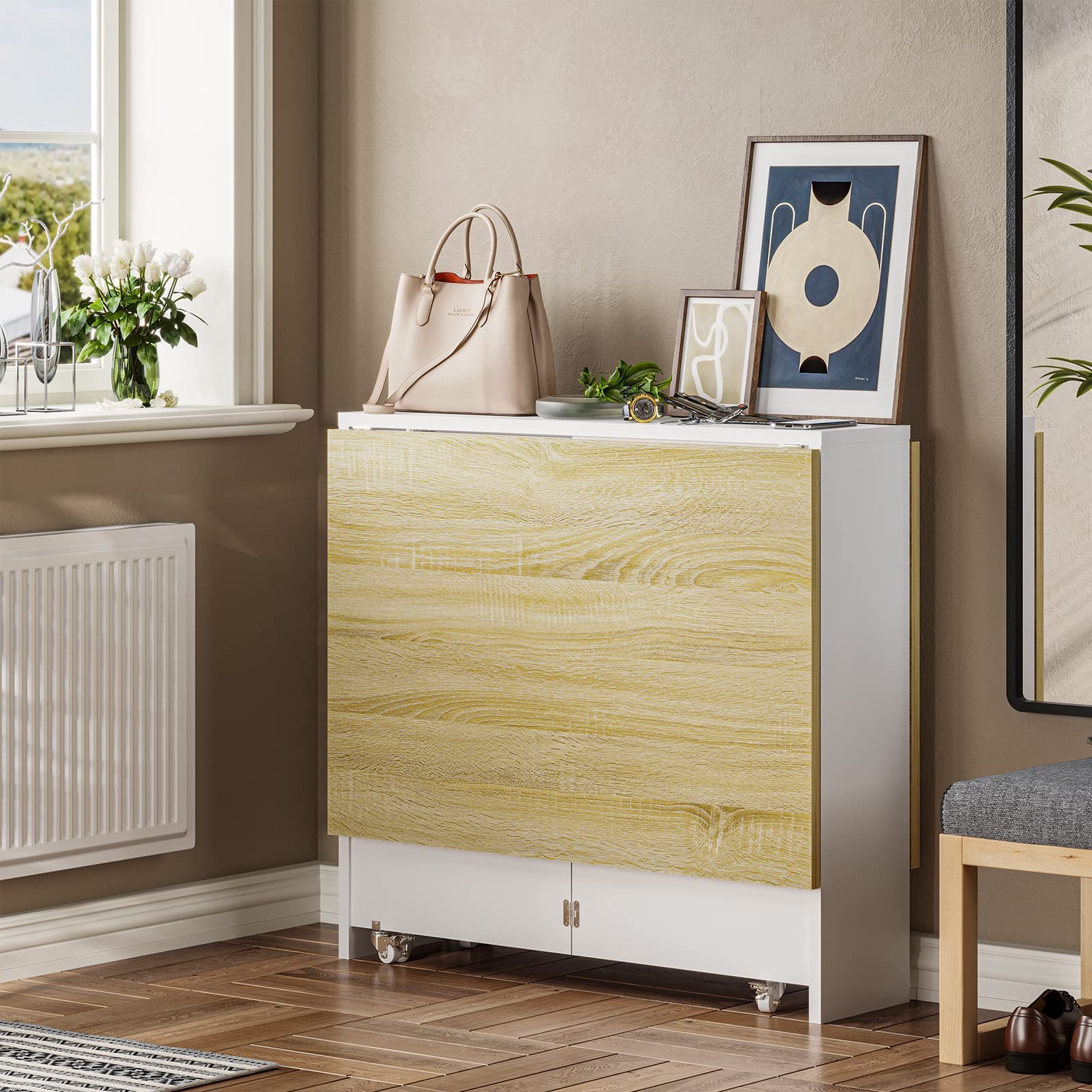 Tiptiper Folding Dining, Versatile Dinner Table with 6 Wheels and 2 Storage Racks