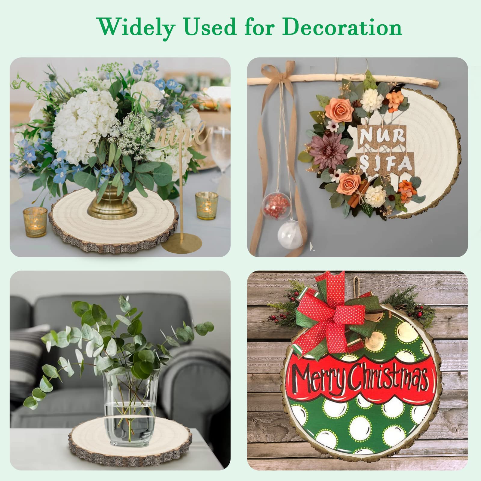 • Large Wood Slices for Centerpieces : These wood slices with 10-12 inch diameter ,perfect for weddings, bridal and baby showers,party, birthdays ,table decorative, home decoration,use these wood slices to create various decorations follow your ideas,provide natural rustic and unique enjoyment for you!
